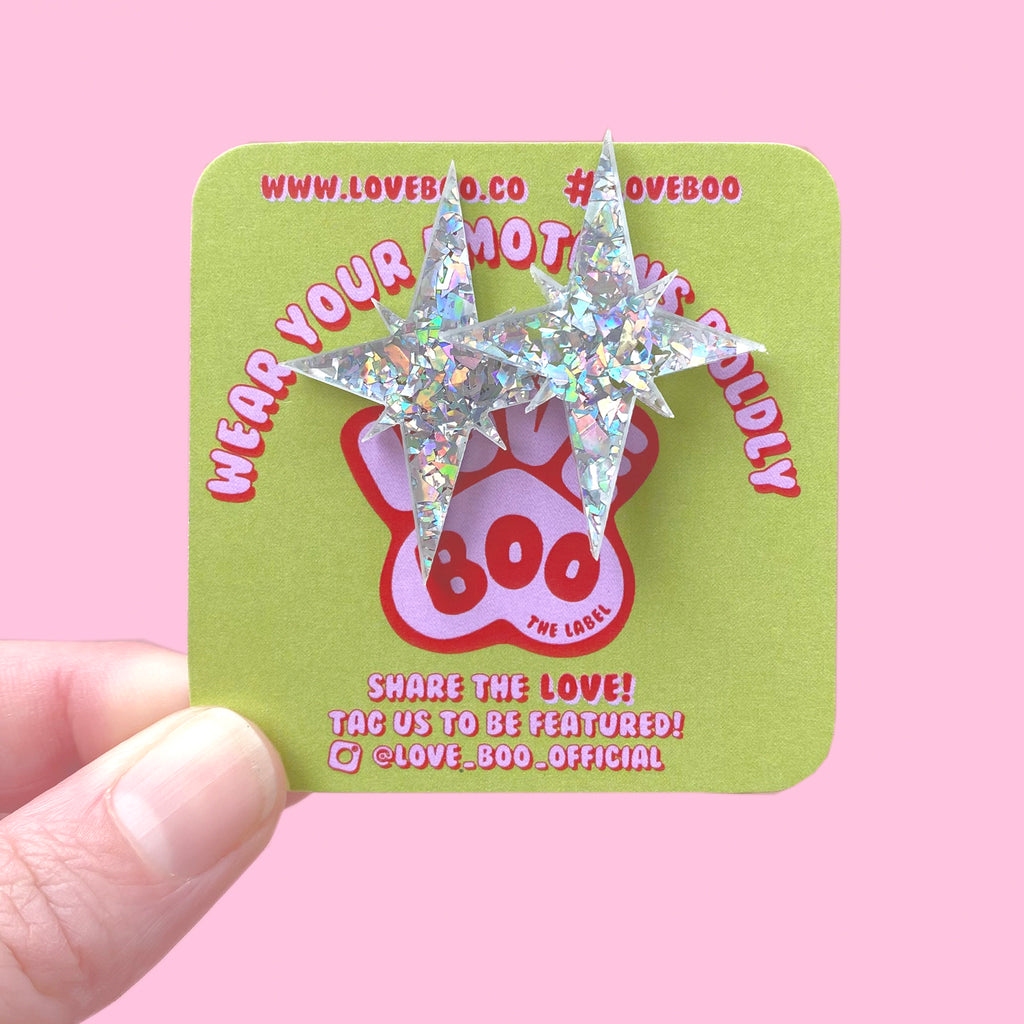 3mm Acrylic, 304 Surgical Stainless-Steel studs, fantastic for sensitive ears.