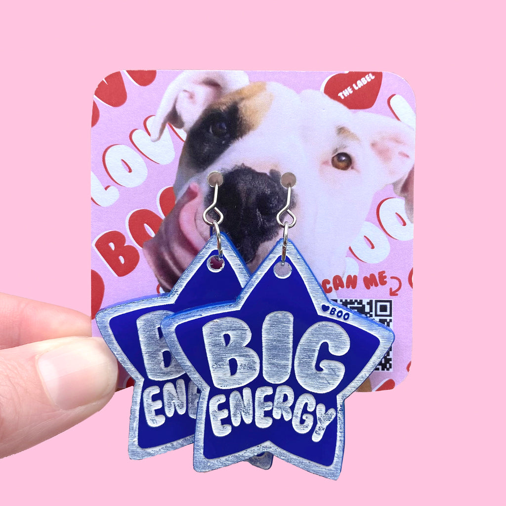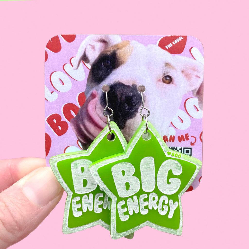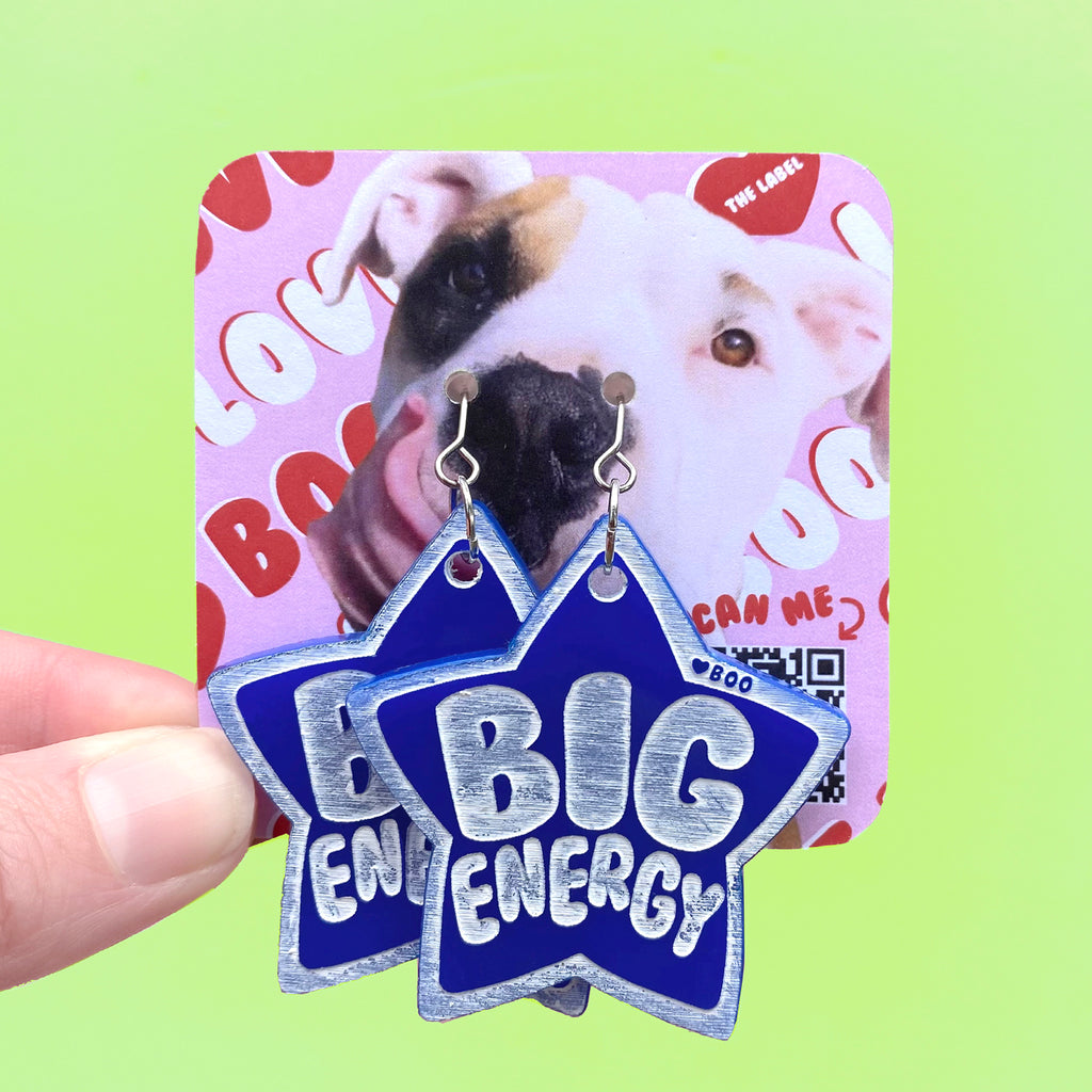 Matching acrylic dog tag and Hooman earrings collection, celebrating the magic of the FURbaby and Hooman connection, redefining big dog stigmas and enhancing positive mental wellbeing for everyone. ✨🐶